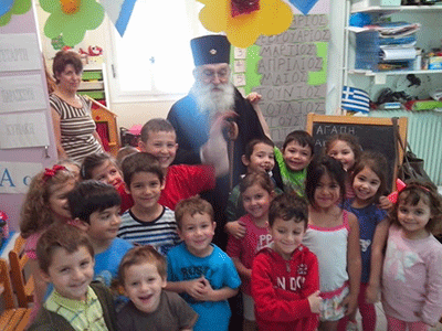 Τα παιδιά και οι Νηπιαγωγοί του Σταθμού, επεφύλαξαν το πρωί της Πέμπτης 5 Ιουνίου 2014, θερμή υποδοχή στο Σεβασμιώτατο.