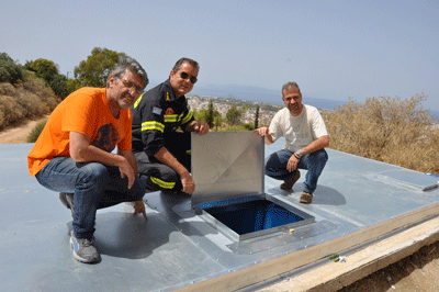 Ο Διοικητής του 8ου Πυροσβεστικού Σταθμού Αθηνών Πύραρχος Στέφανος Πιερρακάκης επιθεωρεί την ανακατασκευασμένη 30τονη δεξαμενή του παλιού λατομείου Αργυρούπολης