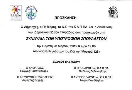 Δημοτικό Ωδείο Γλυφάδας: Συναυλία υποτρόφων σπουδαστών στις 28 Μαρτίου