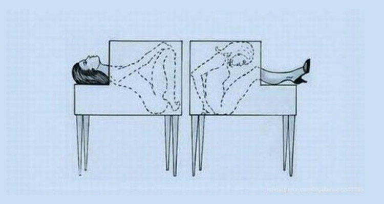 Μία γυναίκα είναι κρυμμένη στο δεύτερο μισό του κουτιού με αποτέλεσμα να εμφανίζονται μόνο τα πόδια της. Η ψευδαίσθηση είναι πως μια γυναίκα κόβεται στη μέση ενώ στην πραγματικότητα υπάρχουν 2 γυναίκες.