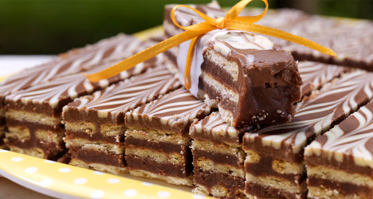- Βάζουμε το ταψί στο ψυγείο όπου το αφήνουμε για πάνω από 4 ώρες μέχρι να κρυώσει για να μπορέσουμε έπειτα να το κόψουμε σε κομμάτια με ένα κοφτερό μαχαίρι.