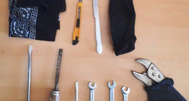 διαρρηκτικά εργαλεία, πλαστική κάρτα, γάντια μιας χρήσης, ζευγάρι κάλτσες, μαντήλι προσώπου καθώς και τα αφαιρεθέντα αντικείμενα.