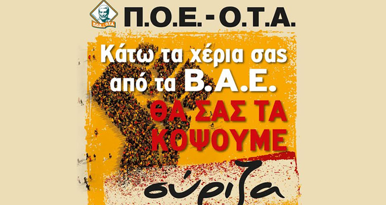 Π.Ο.Ε.-Ο.Τ.Α.: “ΚΑΤΩ ΤΑ ΧΕΡΙΑ ΣΑΣ ΑΠΟ ΤΑ Β.Α.Ε.”