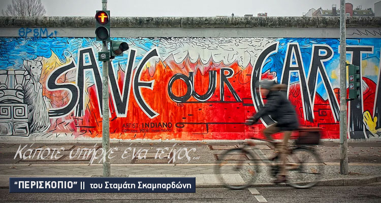 «….Η ιστορία κινούνταν πολύ γρήγορα για εμάς. Οι ψυχές μας δεν μπορούσαν να την ακολουθήσουν. Ούτε η πολιτική ούτε η τέχνη. Όλοι μας προσπαθούσαμε να καταλάβουμε τι συνέβαινε γύρω μας. Οι πληγές από τριάντα χρόνια χωρισμού ήταν βαθιές. Δυτικοί και Ανατολικοί είχαμε απομακρυνθεί μεταξύ μας και είχαμε διδαχθεί επί δεκαετίες να απορρίπτουμε ο ένας τον άλλο…». Απόσπασμα από το αφιέρωμα της εφημερίδας των Συντακτών στο τείχος του Βερολίνου.
