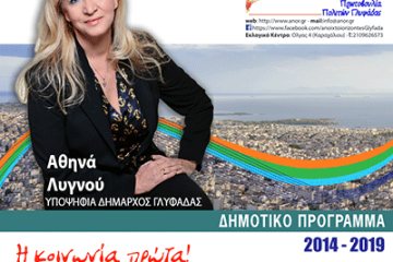 πραγματοποιεί μεγάλη προεκλογική συγκέντρωση την Παρασκευή 9 Μαίου 2014 και ώρα 8.00 μ.μ. στη Πλατεία Β. Κατράκη (κεντρική πλατεία Γλυφάδας).