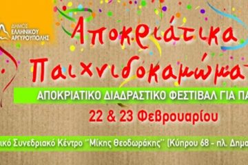 ΑΠΟΚΡΙΑΤΙΚΑ ΠΑΙΧΝΙΔΟΚΑΜΩΜΑΤΑ (ΑΠΟΚΡΙΑΤΙΚΟ ΔΙΑΔΡΑΣΤΙΚΟ ΦΕΣΤΙΒΑΛ ΓΙΑ ΠΑΙΔΙΑ) ΣΑΒΒΑΤΟ 22/2 & ΚΥΡΙΑΚΗ 23/2. "Βάλτε τις στολές σας, μασκαρευτείτε και ελάτε να χαρούμε μαζί στο πνεύμα των ημερών, μέσα από πρωτότ...
